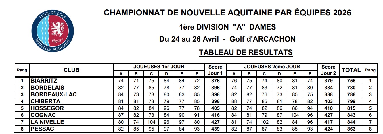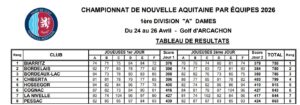 Les scores de la qualification : Aude Morizio (cap) 84/82 Carla Grechi 73/75 Alicia Tramasset 78/76 Sasha Ochoantesana 80/73 Chloé Rosain 83/82 Alix Baudot 85 (1er tour) Manon Bétuing 82 (2ème tour). L’équipe gagne sa demi-finale face au golf bordelais, jusqu’au 19ème trou pour Alicia qui l’emporte !!! Défaite le dimanche en finale face à l’équipe de Biarritz .