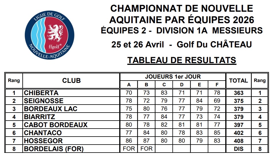 Les scores de la qualification : Thomas Vignon 75, Hugo Rinaldi 80, Julien Rosain 76, Marius Chardon (cap) 77, Louis Pascual-Battu 79, Paul Horsey 72. Défaite ensuite en demi finale face à l’équipe de Seignosse (le futur vainqueur du championnat)